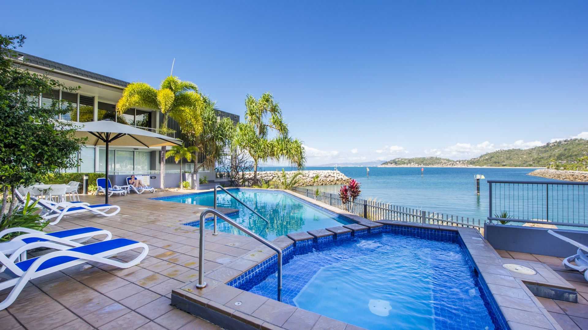 The spacious living areas are air-conditioned and equipped with ceiling fans, ensuring a comfortable environment regardless of the weather outside. When you do venture out you will find a covered balcony area with outdoor furniture allows guests to enjoy stunning water views. The complex shares 4 communal swimming pools providing ample entertainment opportunities for everyone in the squad.