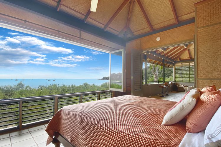 The master ensuite bedroom features a king bed and a stunning view of the Coral Sea, where you can watch the boats sailing by. A true piece of paradise!