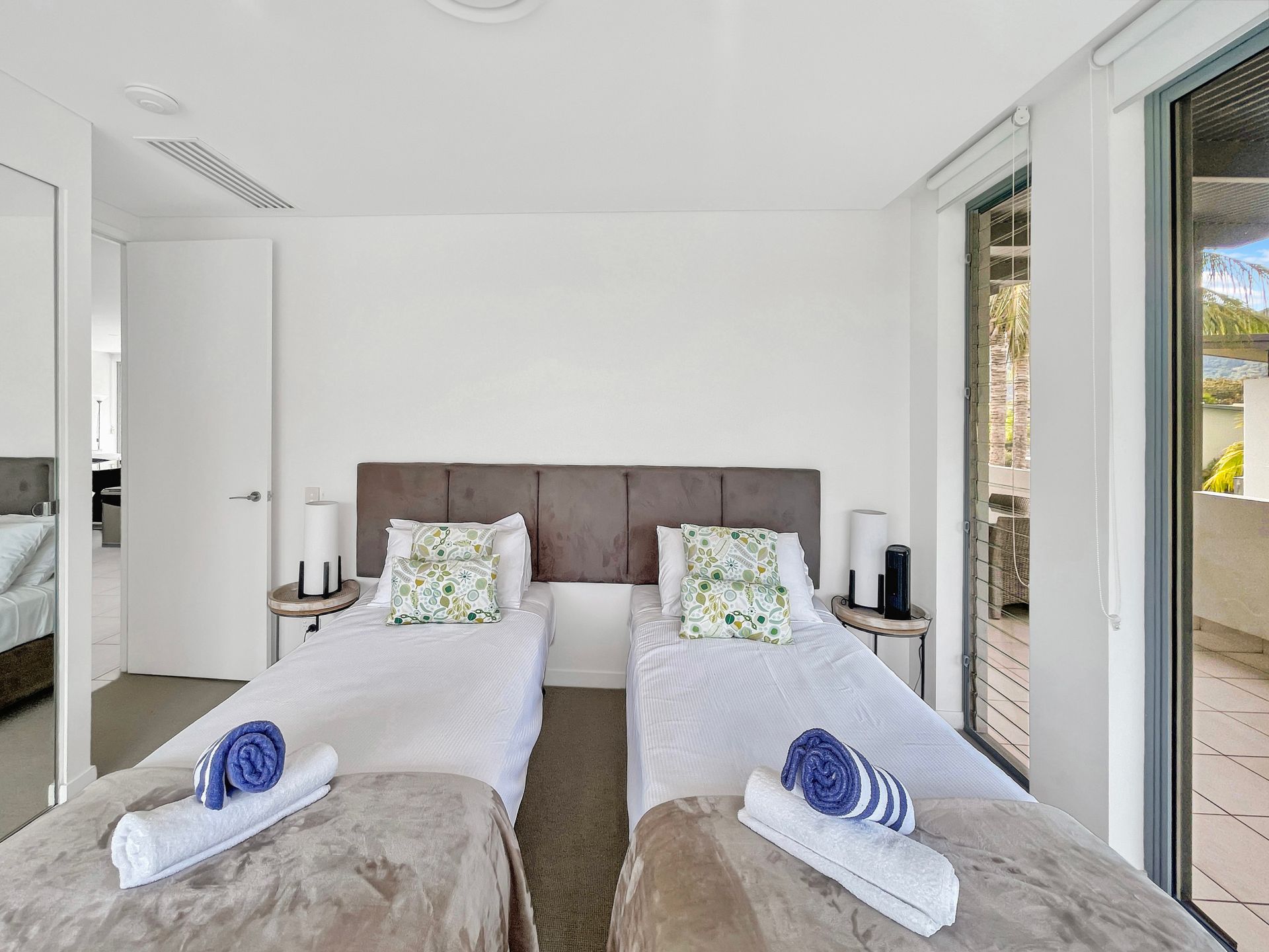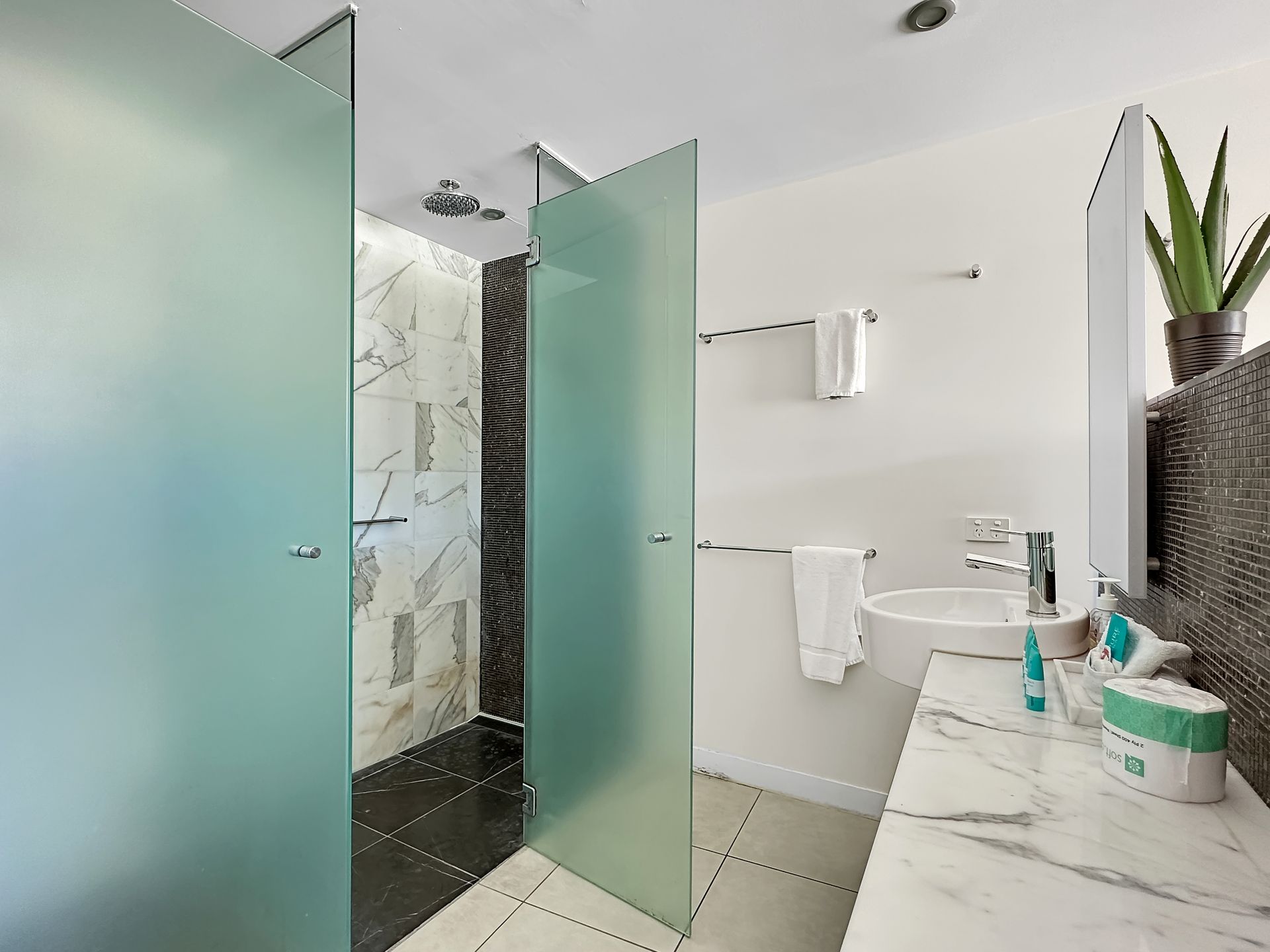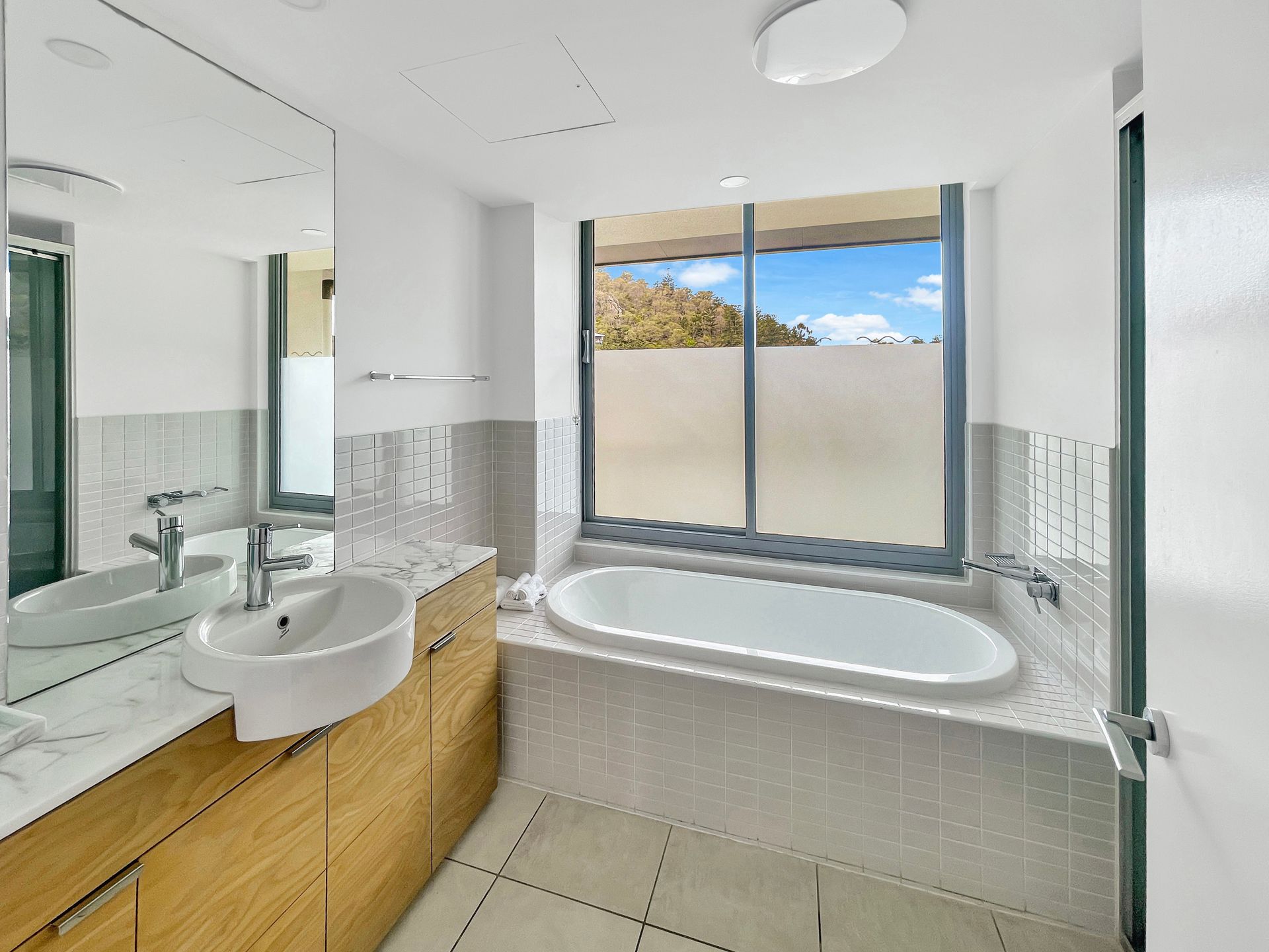 This bright and spacious penthouse features four generously sized bedrooms complete with all the necessary comforts. Two of the bedrooms have enticing views of the water and are adorned with large, comfortable beds for your perfect night's sleep. Additionally, two bathrooms with tubs and an extra toilet in the laundry designed to ensure your utmost convenience.