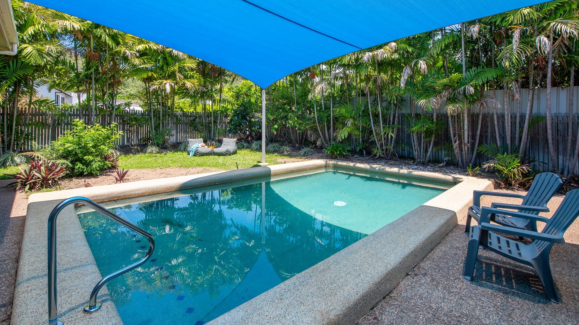 A large pool is the perfect centrepiece of Butterfly Bungalow with a shade sail allowing comfortable swimming all summer long.
