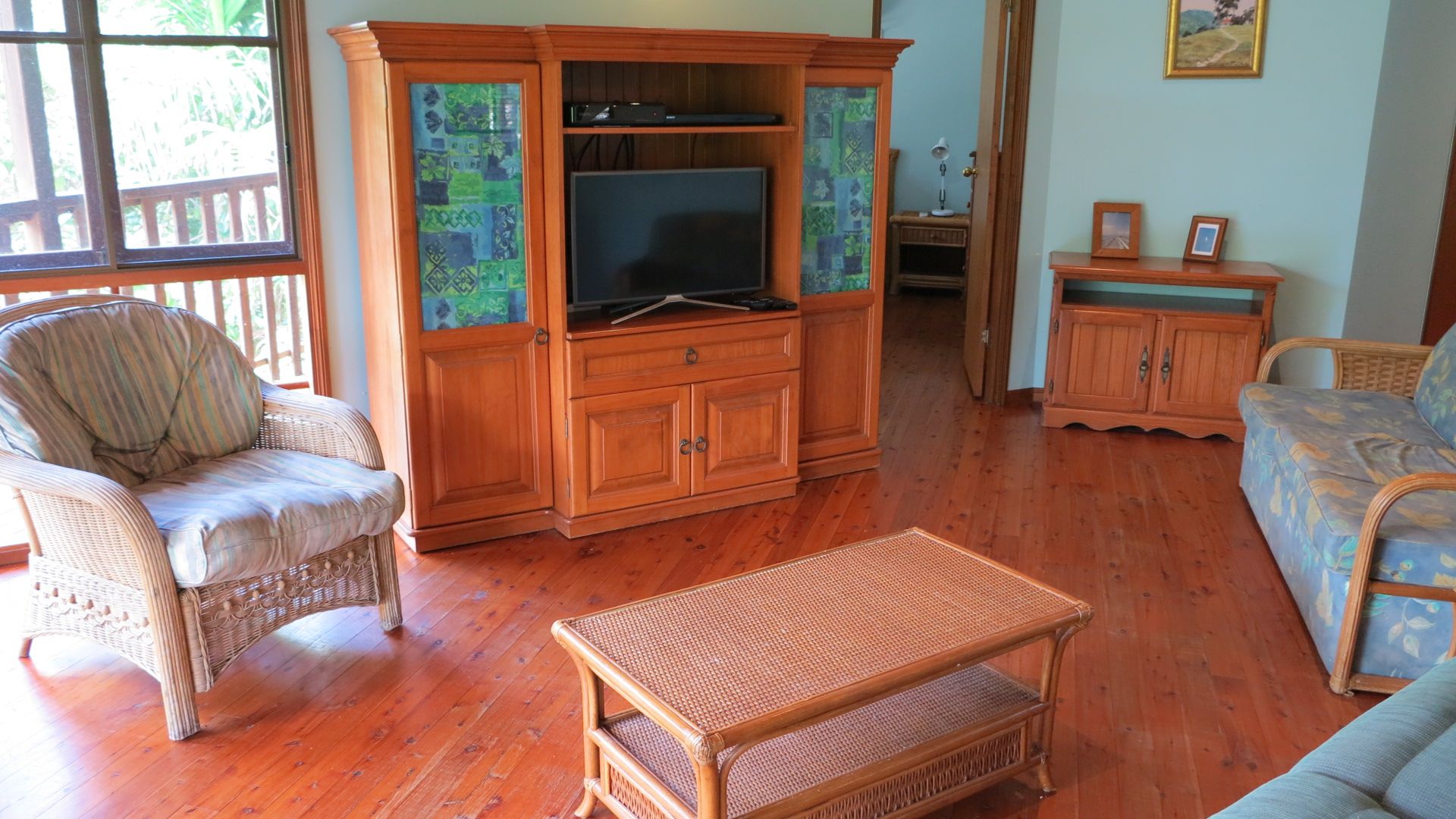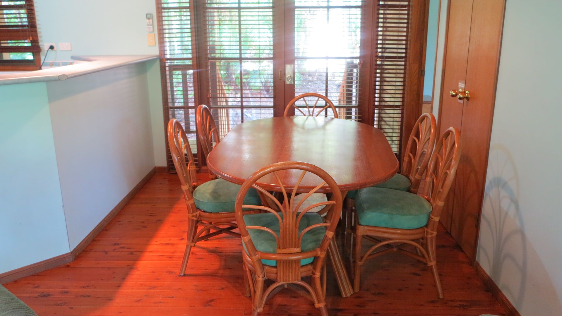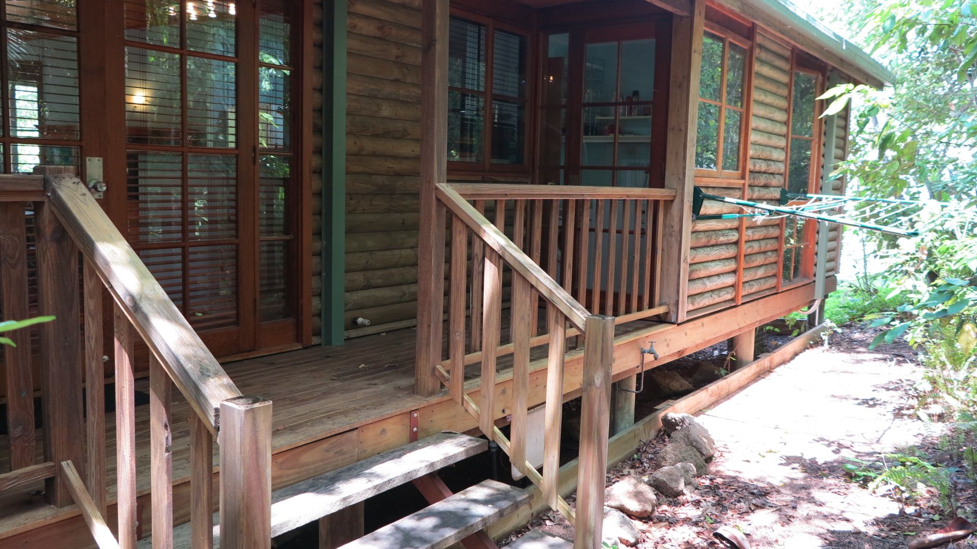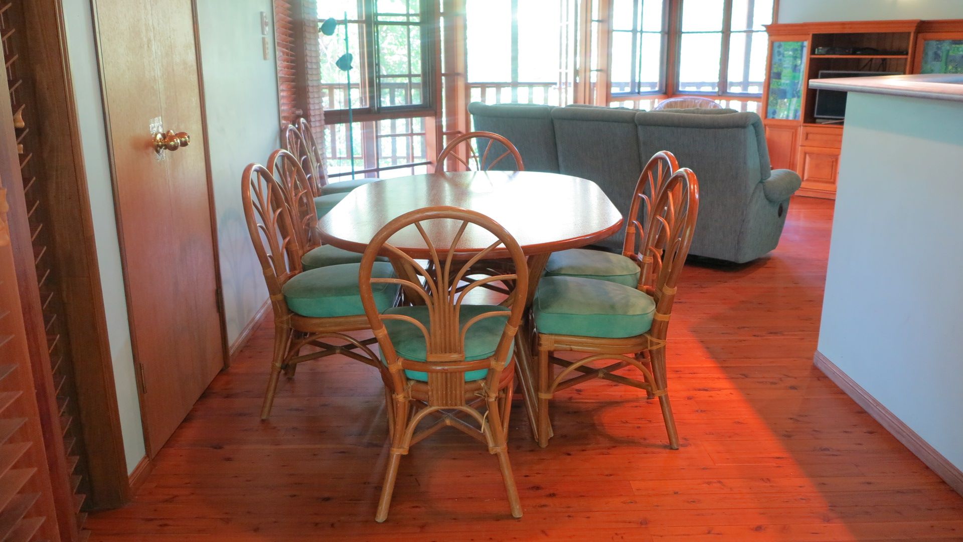 The open plan living area features French doors that open out to the deck and your private tropical outdoor dining area with BBQ that is nestled amongst the bushland.