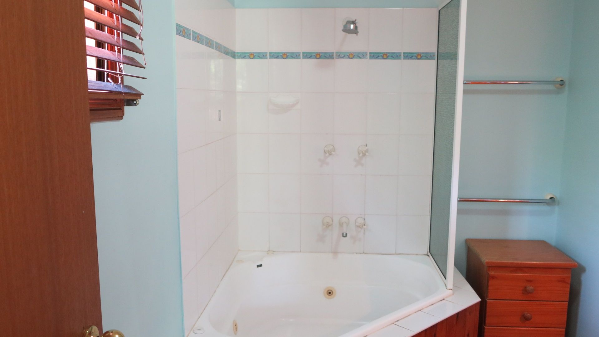 Bathroom - Corner spa bath with overhead shower, plus toilet