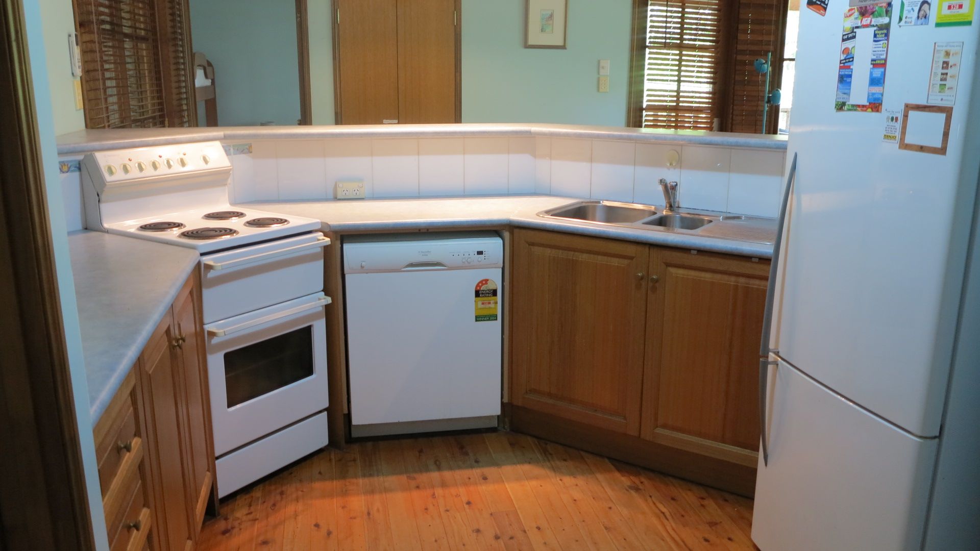 This home is designed to be your home away from home. It features open plan lounge, kitchen and dining, all planned with your comfort in mind. The lounge area has plush couches and a flat screen TV with Foxtel, DVD player, CD player and a CD radio. There is also a dining table and a kitchen that is fully equipped with a dishwasher, oven, fridge/freezer and microwave.