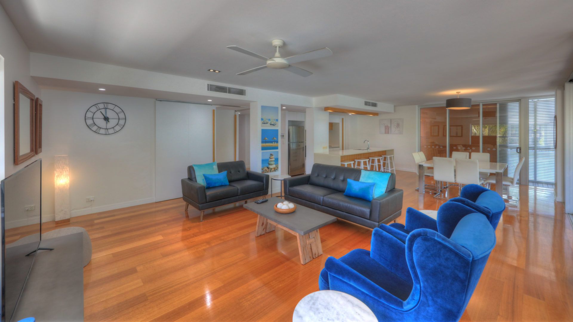 Apartment 10 is on the second level featuring 2 queen beds and 2 single beds, lovely views of the foreshore, water and mountains. This apartment features a fantastic 10mt x 3mt front balcony. There is lift access.