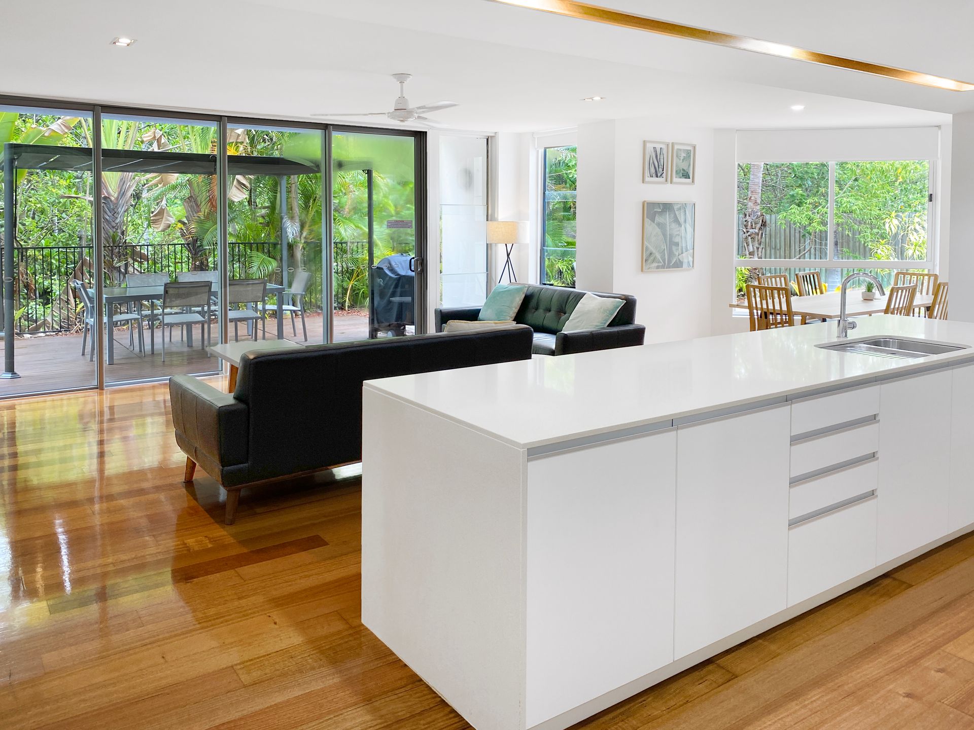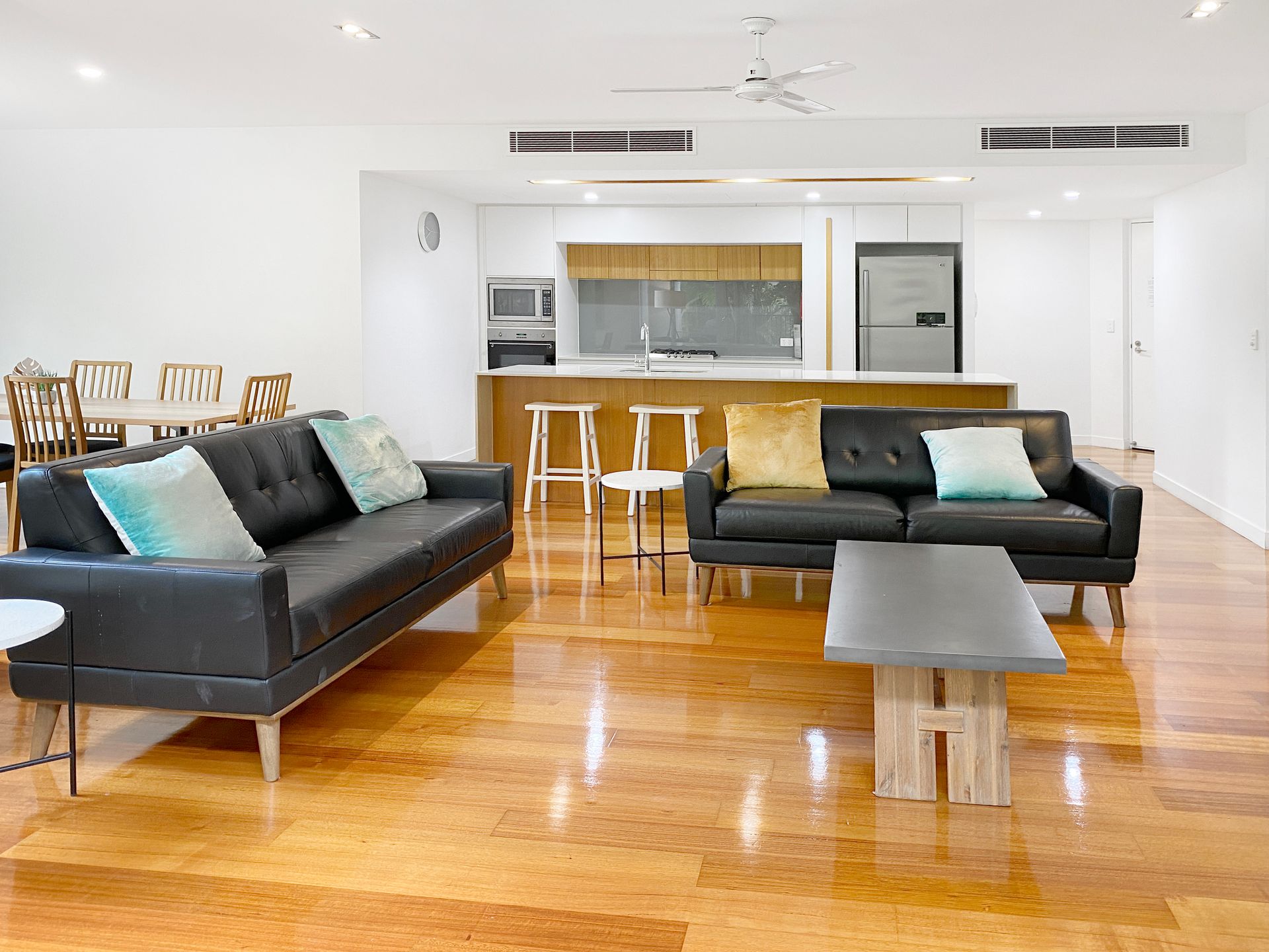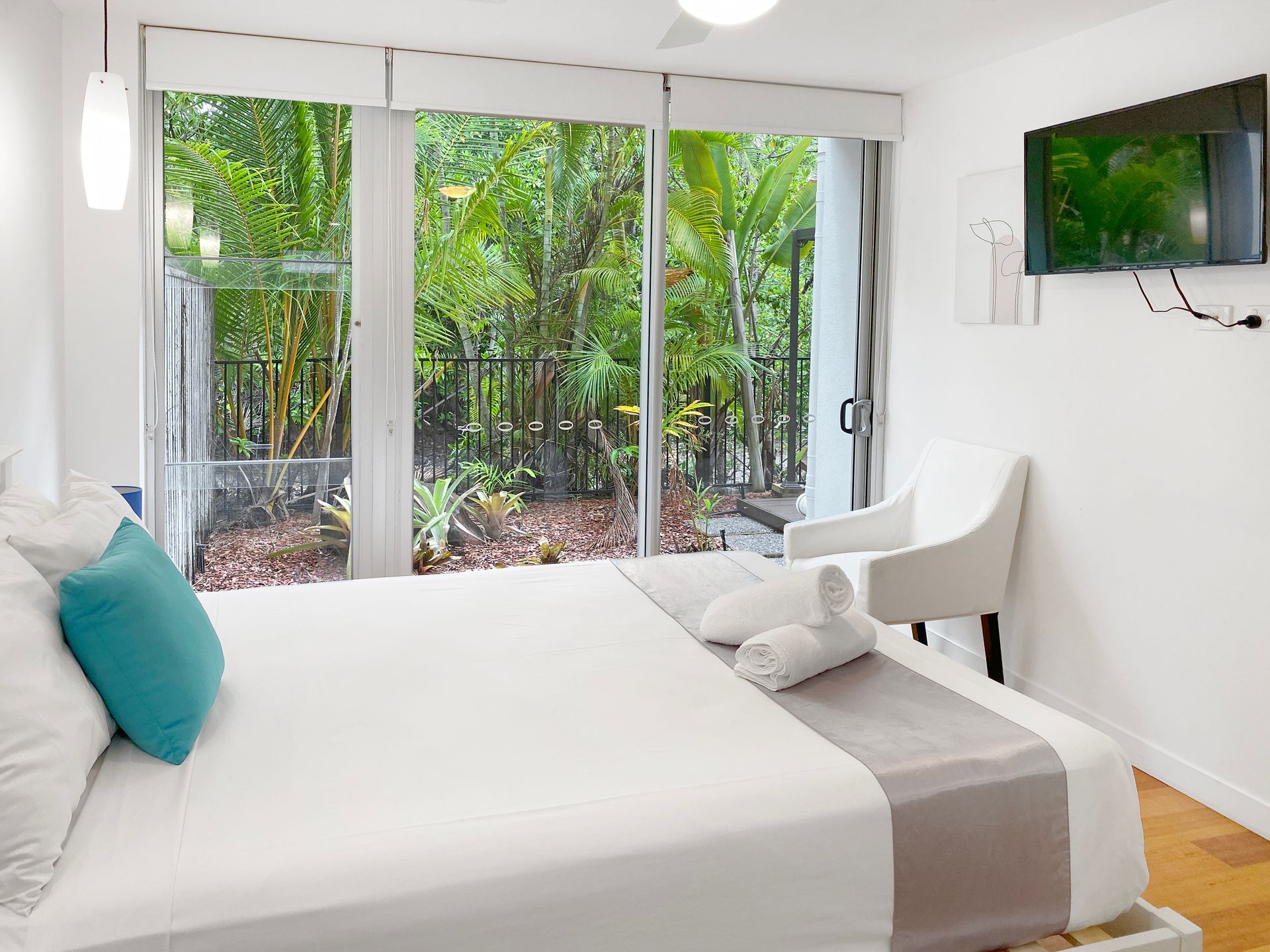 Apartment 2 is on the ground level setback from the front with a private outdoor garden area bordering the natural creek vegetation. A great unit for couples with all the luxury of the more expensive beachfront apartments. This apartment features 2 queen beds.