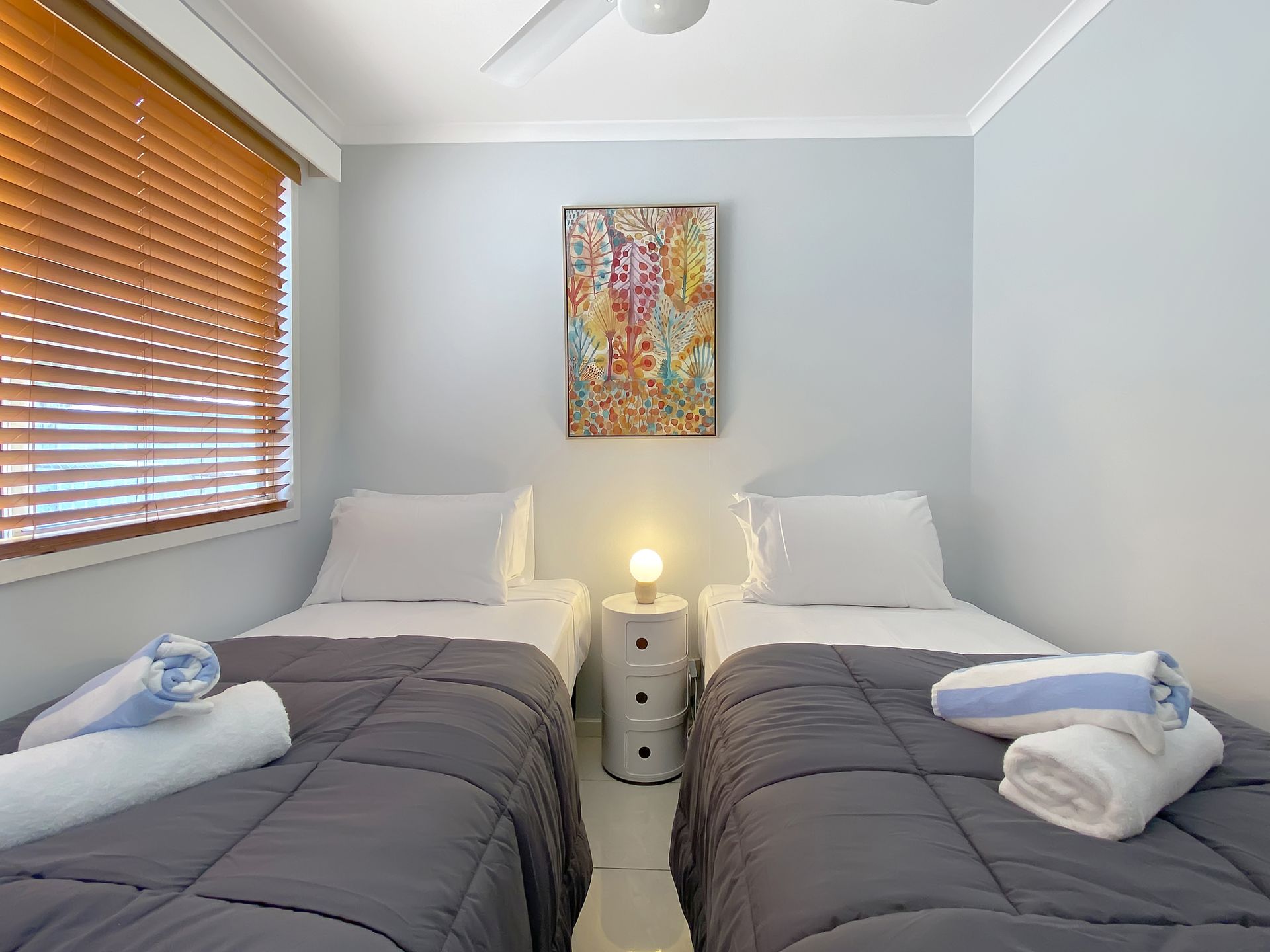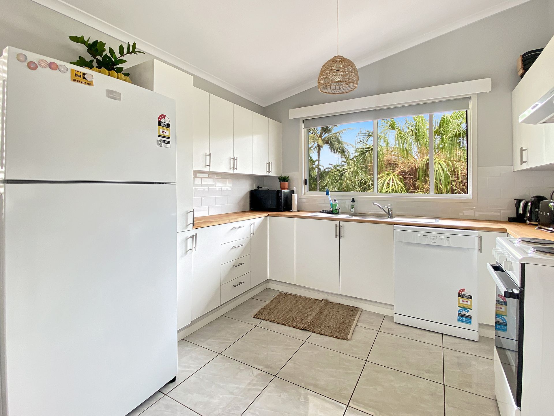This impeccably presented 3-bedroom unit has undergone recent renovations, showcasing a complete refurbishment. Upon entry, you'll encounter a cozy, tastefully styled interior. The outdoor space is equally inviting, featuring a private entertaining deck and well-maintained grounds with a tropical garden and a captivating lagoon-style swimming pool.
