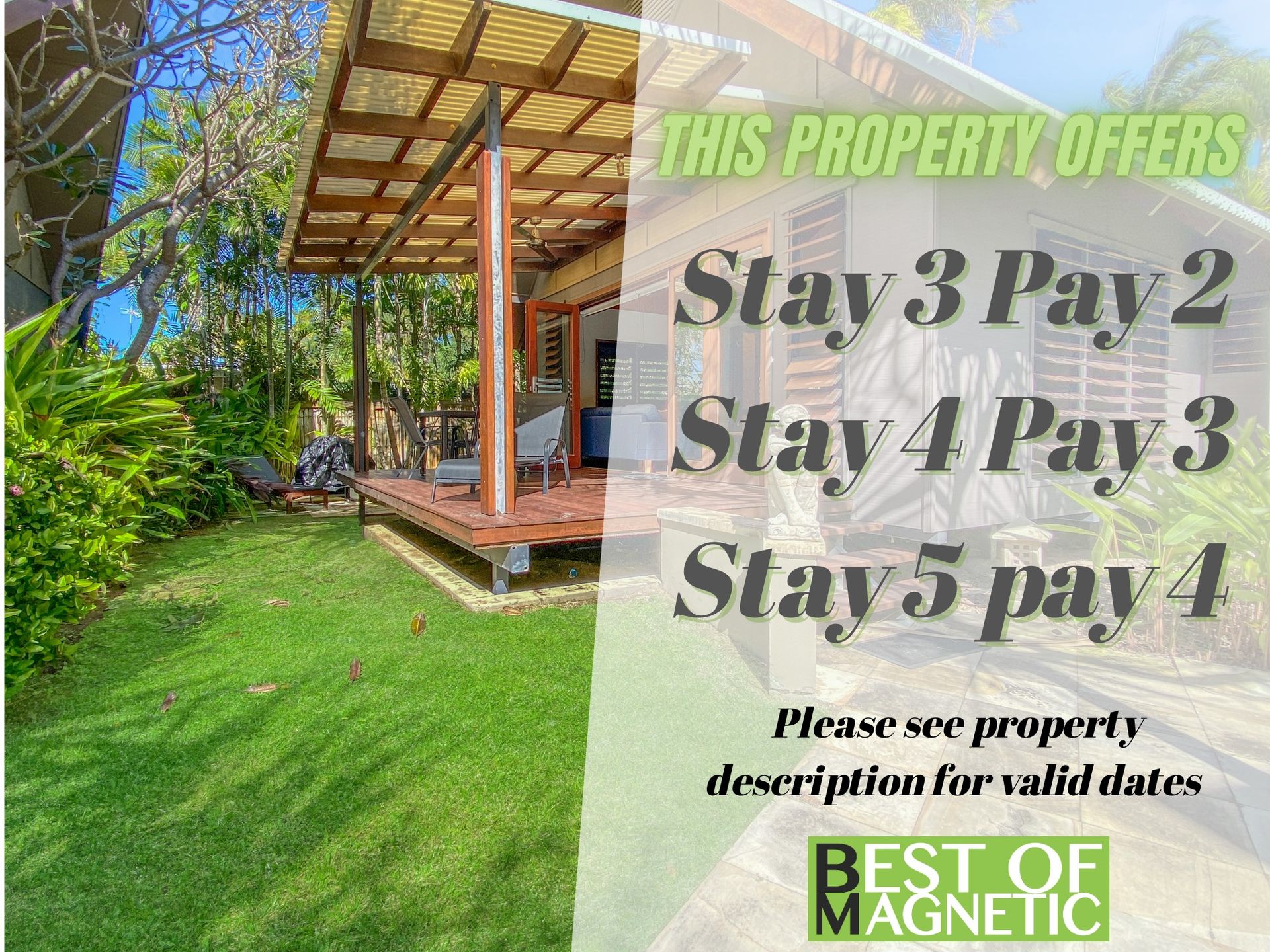 Pure Magnetic is a much sought after boutique resort-style property on the Nelly Bay beachfront. Villa 4 is close to the beach with privacy from the road as well as garden and water views.