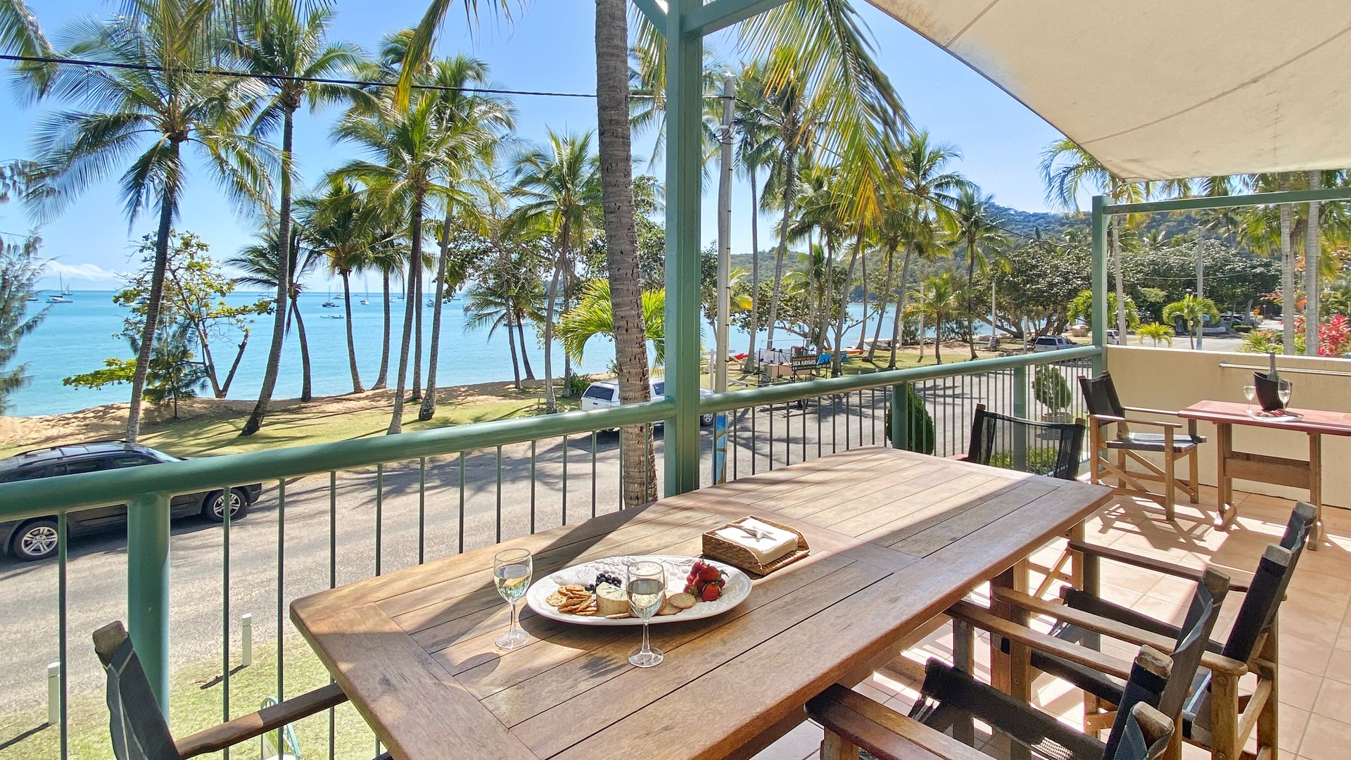 This spacious premium beachfront 2 bedroom unit of 115 square metres, has stunning uninterrupted 180 degree views of the beach. It has been recently renovated and styled by an Interior Designer and is situated on Horseshoe Bay seconds from the beach, and 100m to the restaurants and cafes.